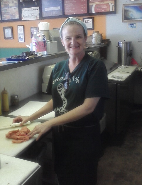 "I work in a restaurant, in an open kitchen, so our customers watch as we prepare their food. I love to wear headbands—they keep your hair off your face—but found they kept popping off my head. I had worked at a custom hat shop, so I tried to apply what I knew about millinery and head sizes to headbands! My inspiration came from riding the bus, noticing the scarves and “do rags” that people wore, and knew that I could come up with a better solution. So I started on a quest to make a better headband, starting with my t-shirts. It actually took me about two years to come up with a pattern that worked. I tried various ideas on my one friend that has very thick hair; I’ve given away a bunch of headbands solely with the idea of feedback. And my friends have been so helpful."